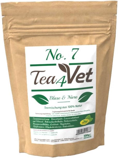 Tea4Vet No.7 je tradicionalna zeliščna čajna mešanica, posebej oblikovana za podporo delovanju urinarnega trakta pri psih. Skrbno izbrana zelišča delujejo blagodejno na mehur in ledvice ter pomagajo vzdrževati naravno ravnovesje v telesu.